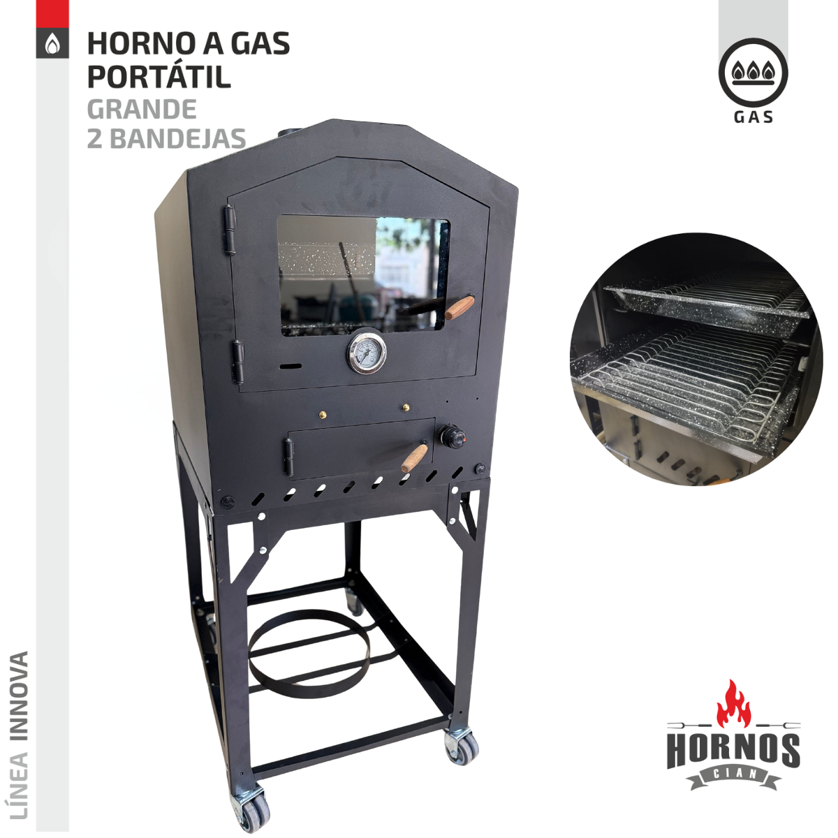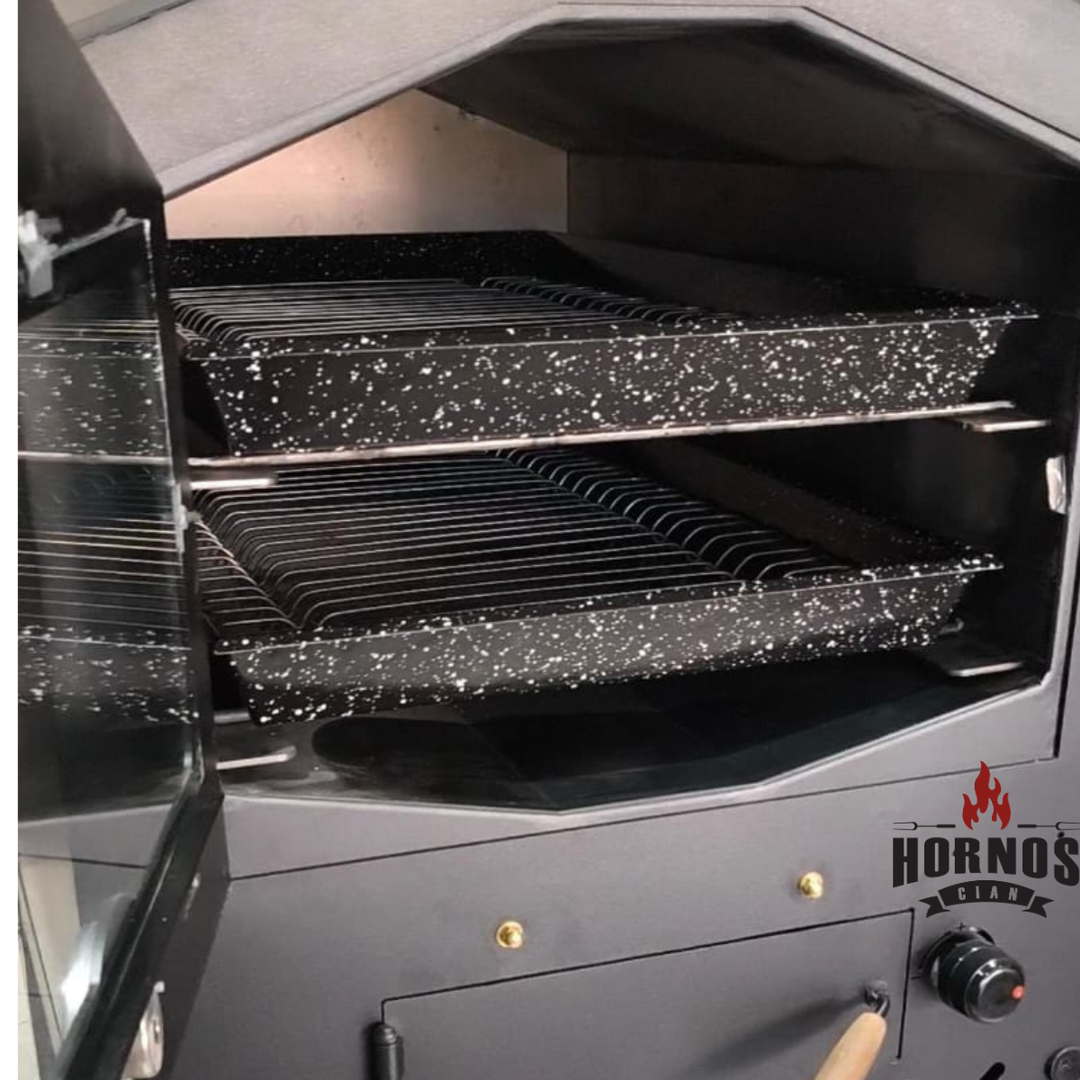 Incluye dos bandejas enlozadas con rejillas en acero inoxidable de 42 x 68cm