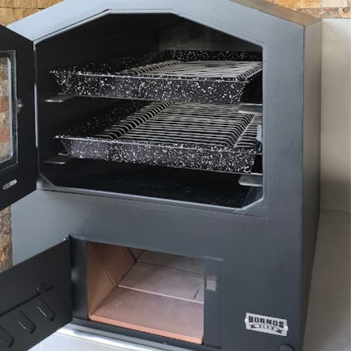 INCLUYE: 2 Bandejas enlozadas con rejillas en acero inoxidable de 42x68cm c/u