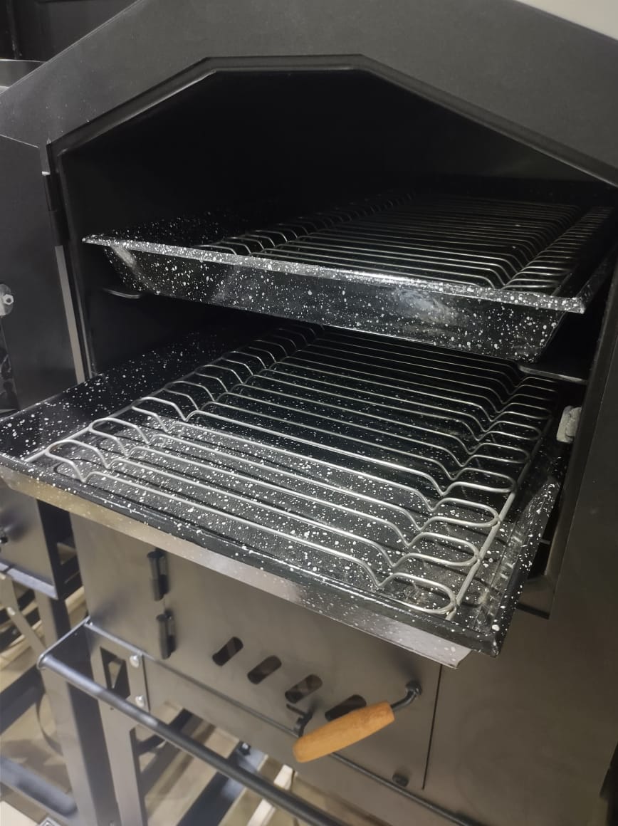 INCLUYE: 2 bandejas enlozadas con rejillas en acero inoxidable de 42x68cm.